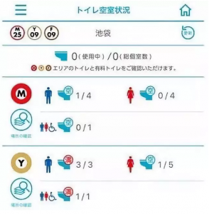 从2018年12月20日起,日本东京地下铁的官方APP就提供了一项便捷的服务:乘客可以在APP上看到地下铁站内厕所的具体使用情况。