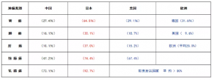 中国,日本,欧美恶性肿瘤五年生存率对比